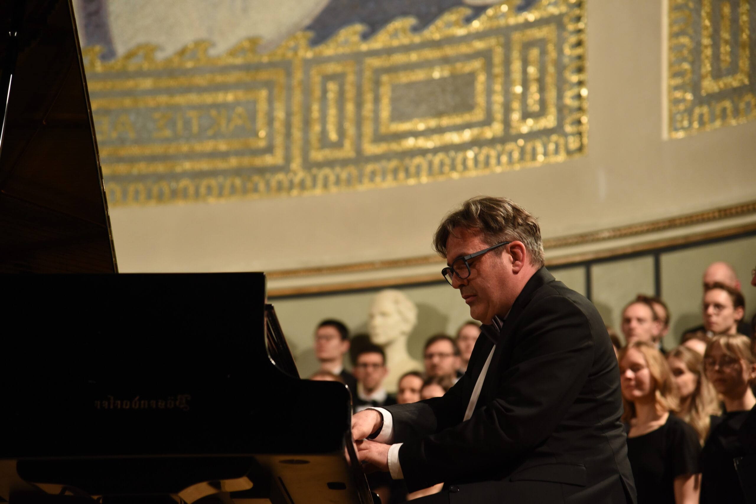 Noch drei Wochen vor seinem Tod begeisterte Tobias Stork Publikum und Chormitglieder im gemeinsamen Semesterkonzert „Memento!“ mit seinen Interpretationen von Fanny Hensels „März“ sowie Liszts virtuoser Bearbeitung des „Erlkönigs“ von Franz Schubert. Niemals hätten wir gedacht, dass dies sein letzter Auftritt sein würde.