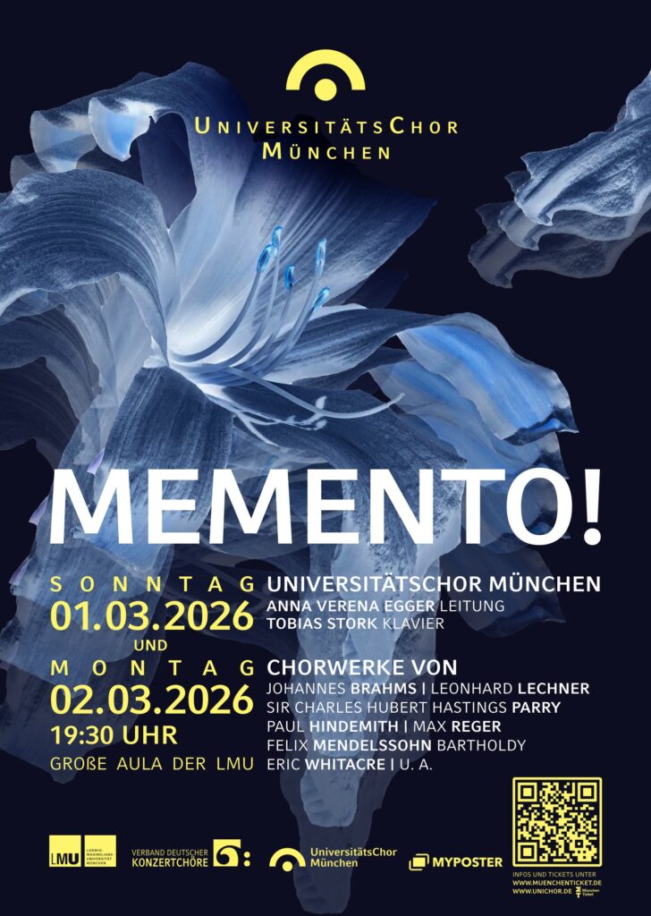 | Sonntag, 01.03.2026 19:30 Uhr | Große Aula, LMU München | Semesterabschlusskonzert: Memento! |